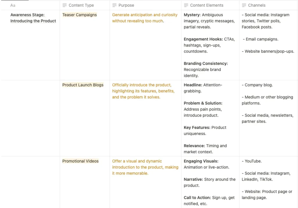 To simplify things, we can divide the content based on the customer journey and product lifecycle.