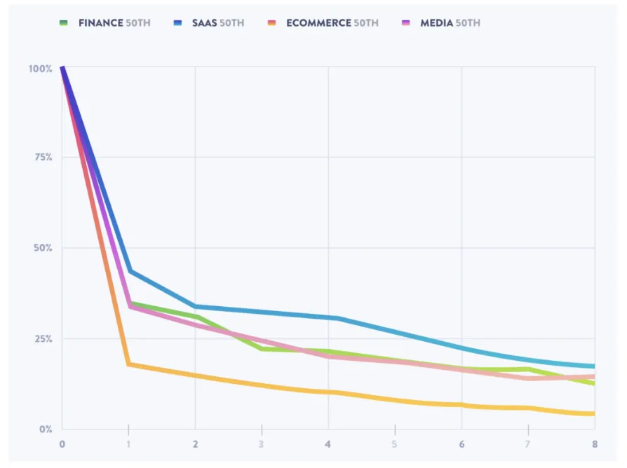For most industries, the average eight-week retention is below 20 percent. Considering the average cost of acquisition of a mid-market SaaS user is about $1500 – $6000, post-purchase engagement and retention remain a central mystery to solve for most SaaS businesses.