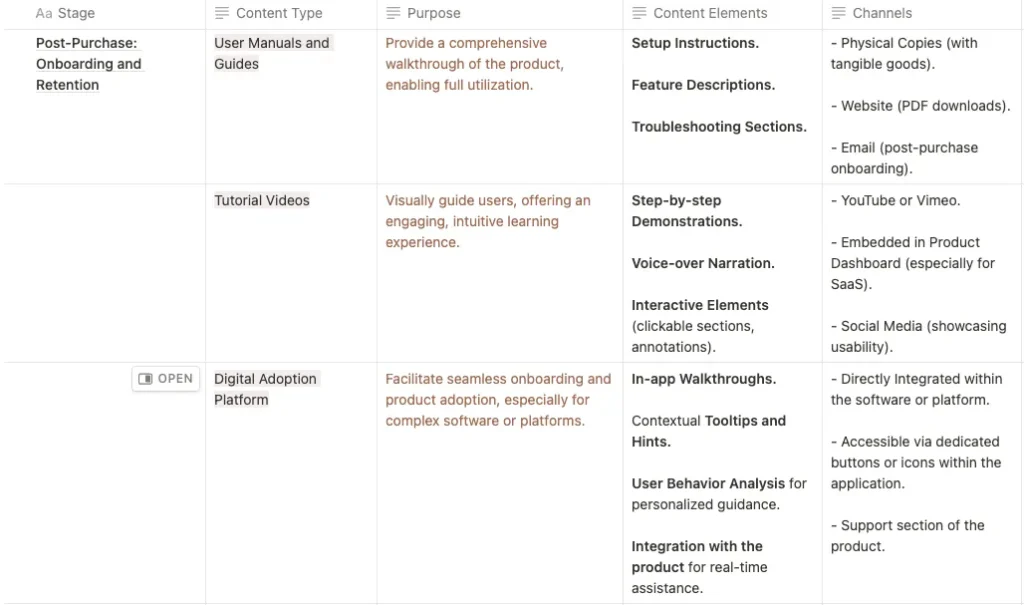 Content in this phase aims to guide users through the early stages of the product. A properly executed Onboarding process can lead to long-term satisfied customers and improve retention. Here are different types of content for this stage