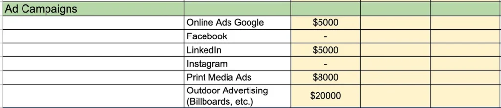 - Partnerships and Collaborations: Budget for joint marketing initiatives, event sponsorships, and cross-promotional deals.
