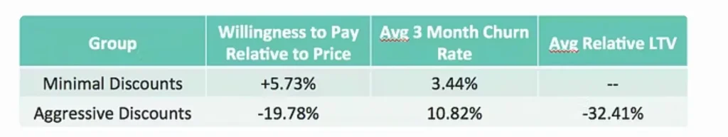 Research from Paddle highlights the risks, showing that discounts can slash customers’ long-term value (LTV) by 30%, increase churn, and dampen their willingness to pay full price later.